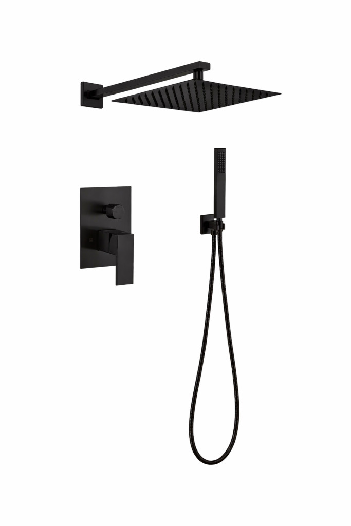 Čtvercová elegantní třídílná vestavná sprchová souprava - černá - prémiová edice