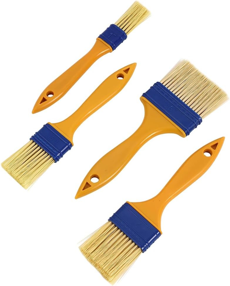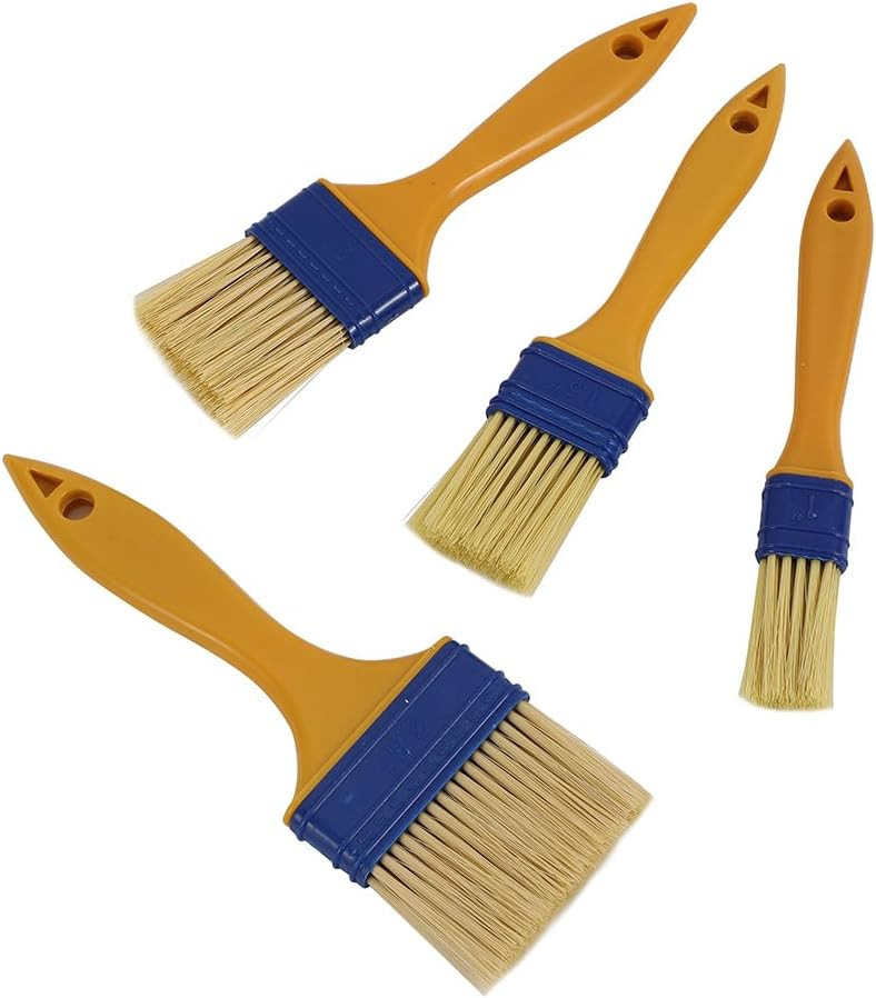 Štětce jsou vyrobeny z odolných, světlých štětin, které zajišťují rovnoměrné nanášení barvy.