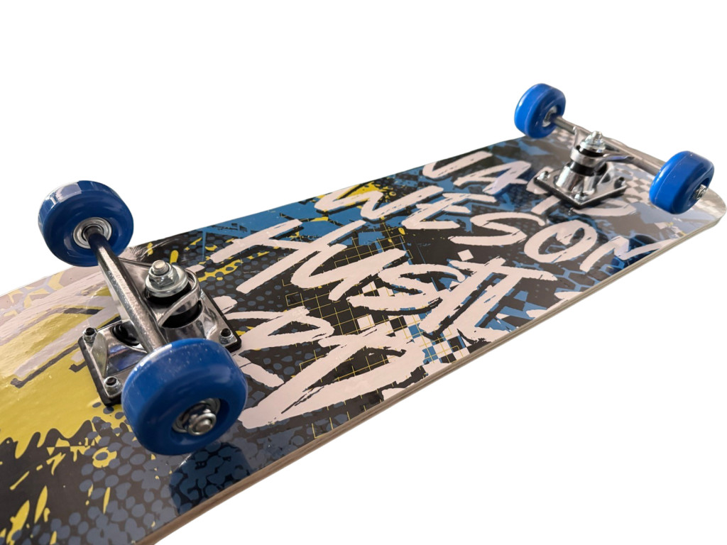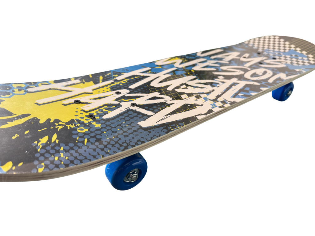 Skateboard o rozměrech 78 cm x 19,5 cm s velkolepou grafikou, ideální pro začátečníky i pokročilé jezdce. Jeho stabilní konstrukce a odolný materiál zajišťují spolehlivé odvalování a jeho jedinečný vzhled vás zaručeně odliší od davu.