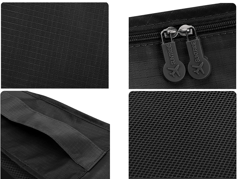 Tašky jsou různých velikostí, takže je snadné si roztřídit věci, které na cestu potřebujete. Tři největší tašky jsou vybaveny oboustrannými zipy, síťovanými poutky pro lepší ventilaci a pohodlnou rukojetí. Menší tašky z neprůhledného materiálu se zipem budou ideální pro uložení oblečení a jiných nezbytných věcí.