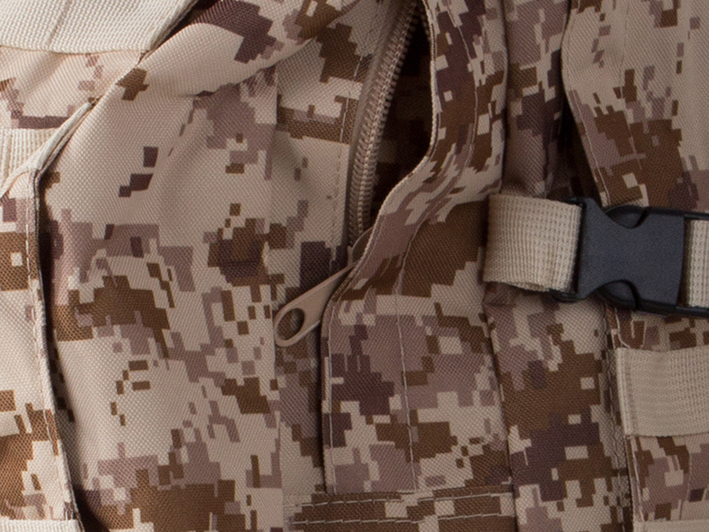 Batoh se skládá z velké přihrádky, další přihrádky a úložného prostoru ze síťoviny. Na bocích jsou dvě připevnitelné kapsy, které lze v případě potřeby odepnout. Uprostřed je také větší připojitelná kapsa, kterou lze odepnout a přenášet samostatně. Tato brašna se skládá ze 4 menších přihrádek - dvou po stranách a dvou uprostřed. Ideální pro uložení různých drobných předmětů a dokumentů. Lze ji připevnit přímo k opasku kalhot nebo ji nosit jako běžnou tašku pomocí přiloženého popruhu.