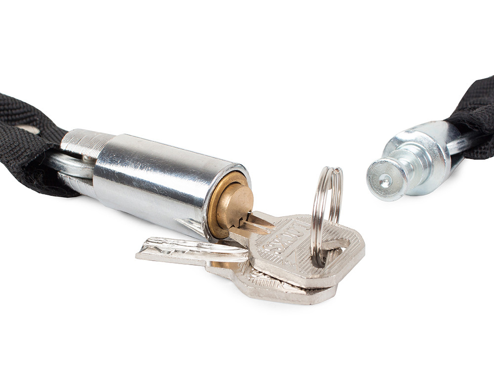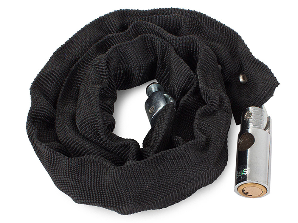 Tento zámek je výjimečné bezpečnostní zařízení pro ochranu jízdních kol, motocyklů nebo zamykání bran. Řetěz je vyroben z nerezové oceli pokryté materiálem odolným proti povětrnostním vlivům, který zabraňuje poškrábání.