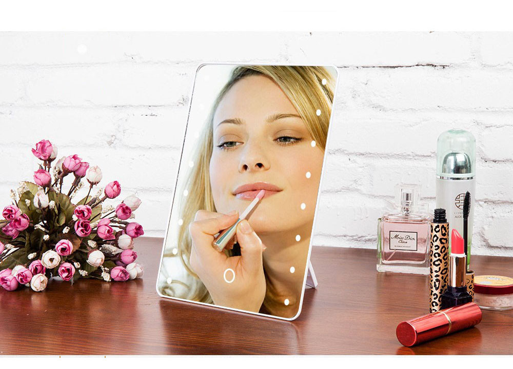 Kosmetické zrcátko se zabudovaným 16 LED podsvícením.