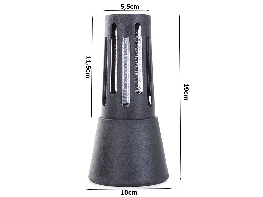 Přitahuje hmyzy a brání jim v úniku. Nasbírané hmyzy se vloží do nádoby ve spodní části zařízení, kterou lze odšroubovat a vyprázdnit.