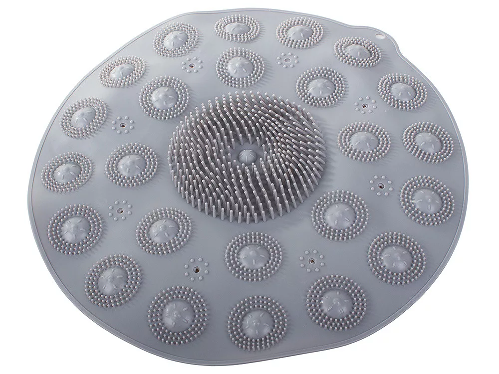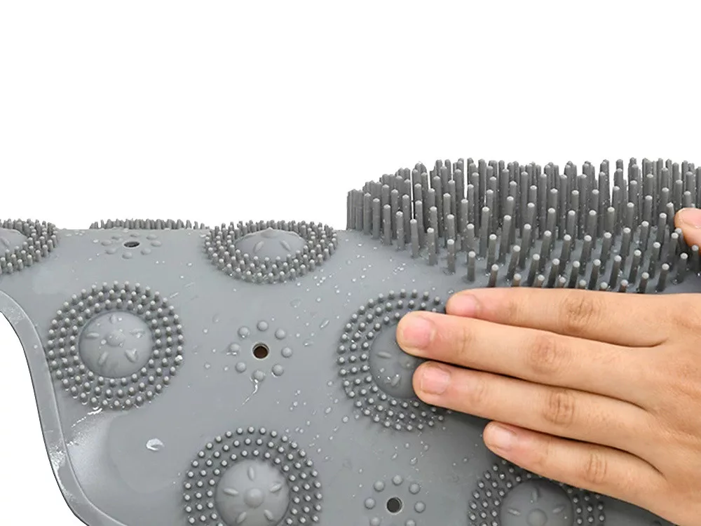 Zadní strana masážní podložky má několik přísavek pro vynikající stabilitu. Při sprchování se nepohybuje, je velmi odolná a neklouže. Bezpečná pro starší osoby a děti.