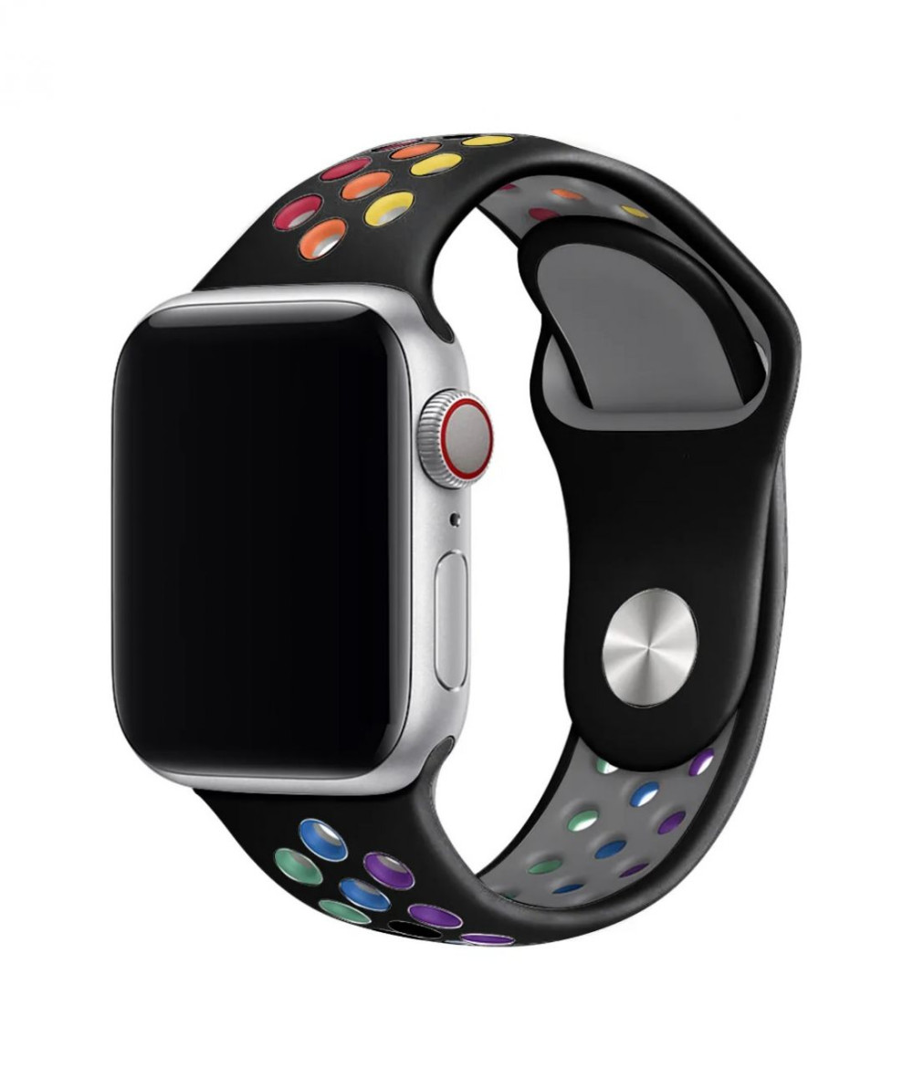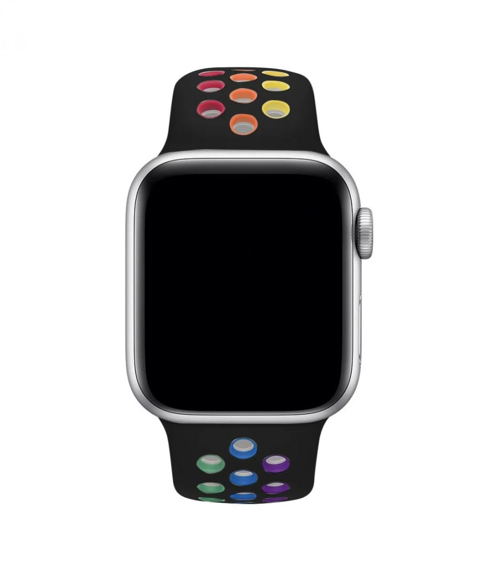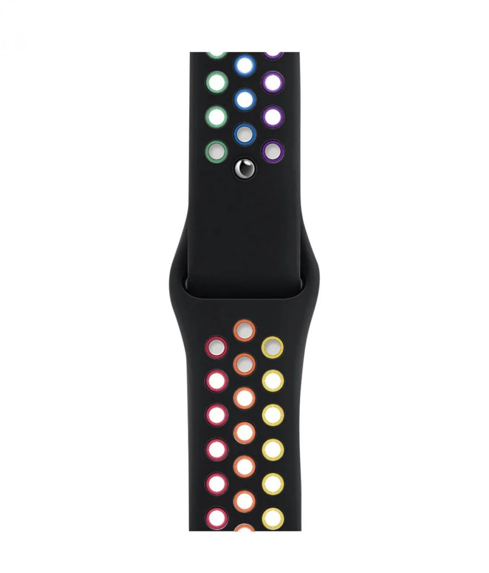 Sports Wear Black-Rainbow velký silikonový řemínek na hodinky Apple Watch 42/44/45/49