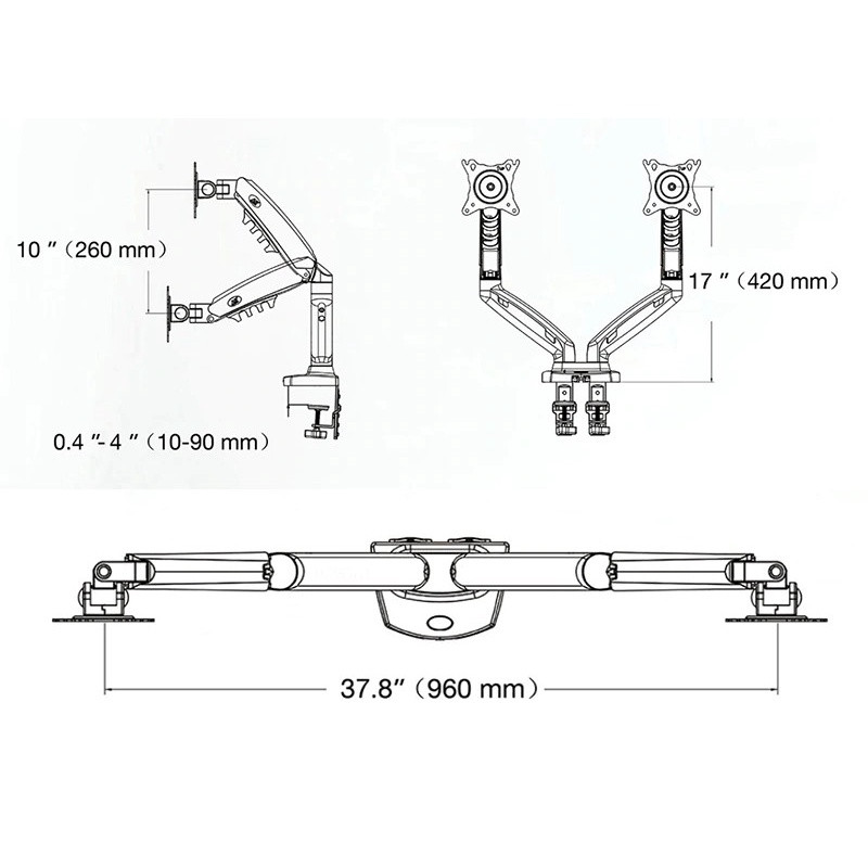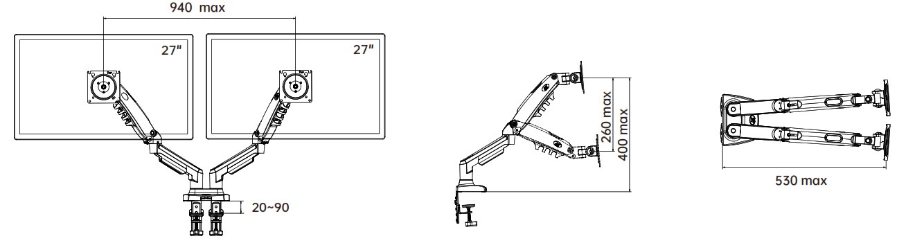 - Se standardními rozměry VESA 75 × 75 a 100 × 100 jej lze použít s monitory o průměru 17 až 27 palců (43 cm – 68 cm).