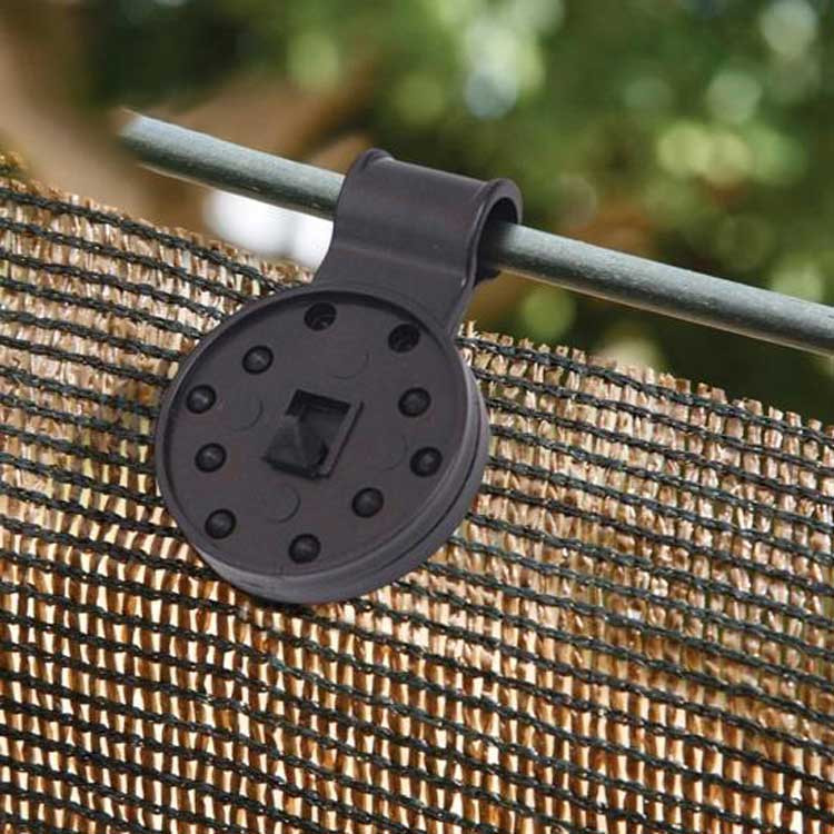 Odolná plastová konstrukce: Stínicí klipy jsou vyrobeny z vysoce kvalitního plastu a jsou navrženy tak, aby odolaly silnému větru a drsným povětrnostním podmínkám, čímž zabezpečují dlouhodobou ochranu vašich rostlin a stínících konstrukcí.