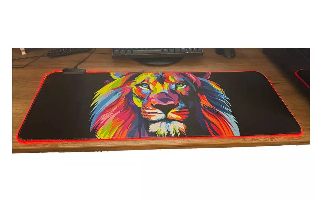 Velká podložka pod myš s LED podsvícením 80 x 30 cm - s barevným vzorem lva