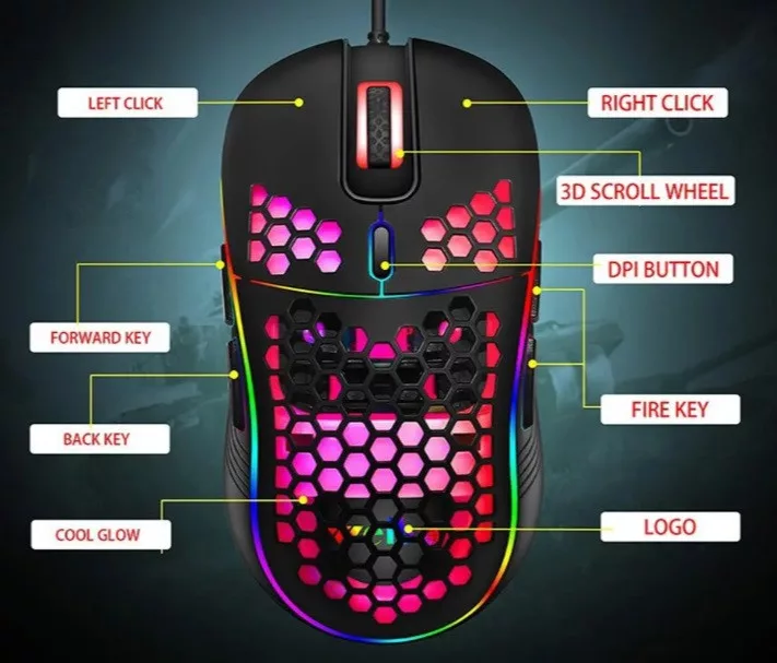 Weibo WB-919 herní optická 8-tlačítková optická myš s LED diodami - 3200 dpi