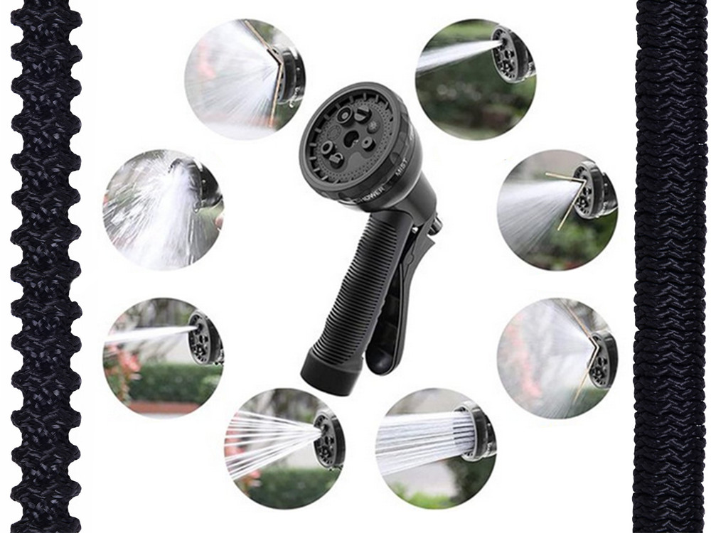 15metrová hadice postřikovače s hlavicí postřikovače v černé barvě