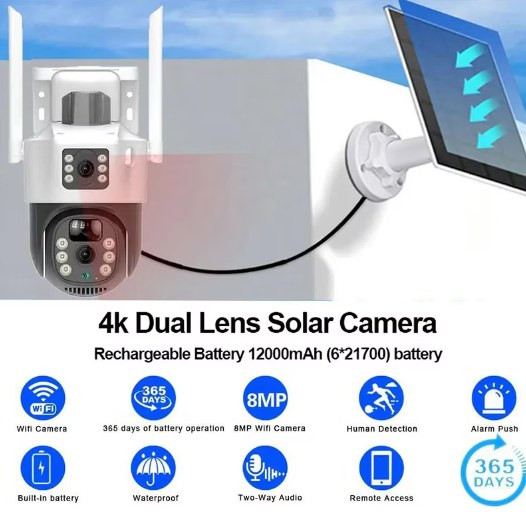 Tato 5 MP FullHD sledovací kamera se solárním nabíjením je ideální pro monitorování vašeho majetku odkudkoli a kdykoli prostřednictvím aplikace. Bateriová solární WIFI kamera s pohybovým senzorem.
