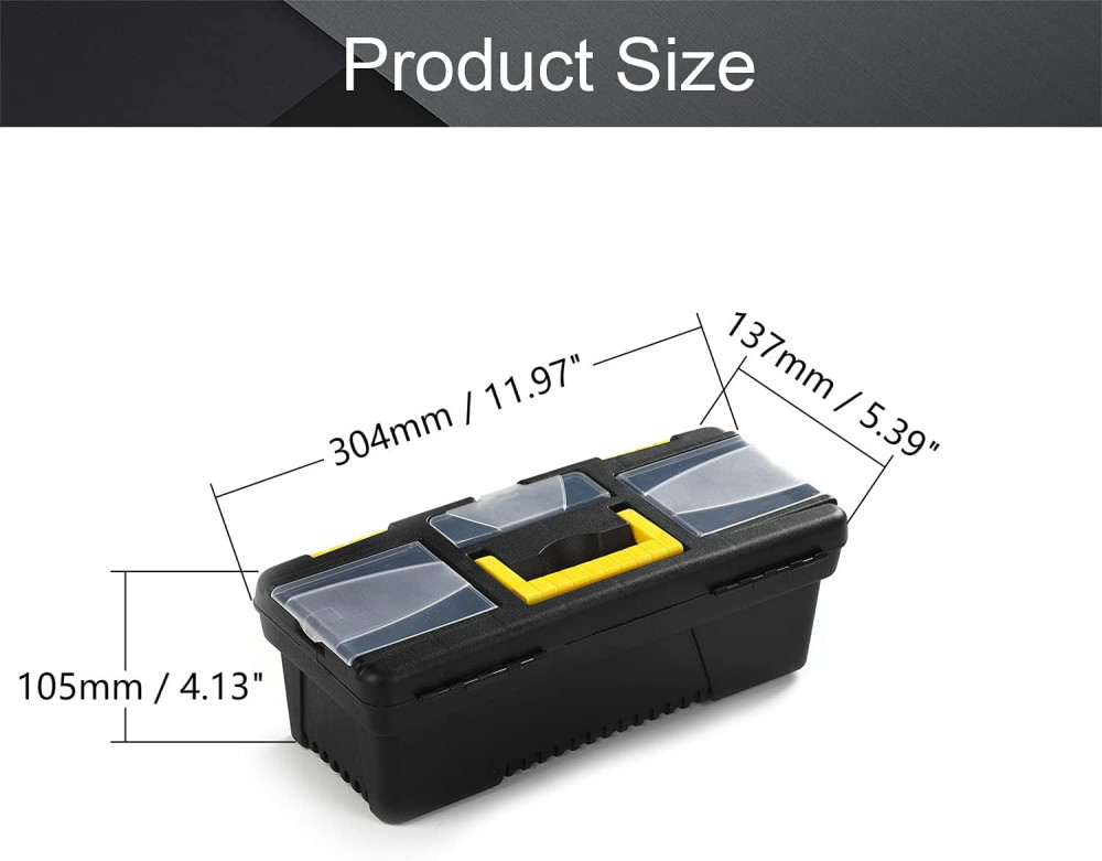 Box na nářadí je vyroben z trvanlivého a odolného plastu. Ideální pro profesionální i amatérské uživatele. Tento box na nářadí nabízí dostatek úložného prostoru pro nejčastěji používané nástroje a činí potřebné nástroje přehledným.