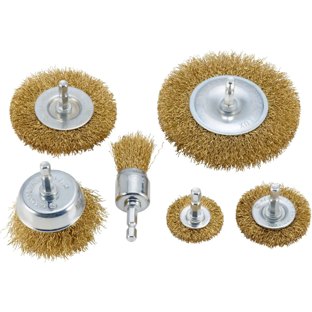 6-dílná sada kovových drátěných kartáčů pro vrtačku