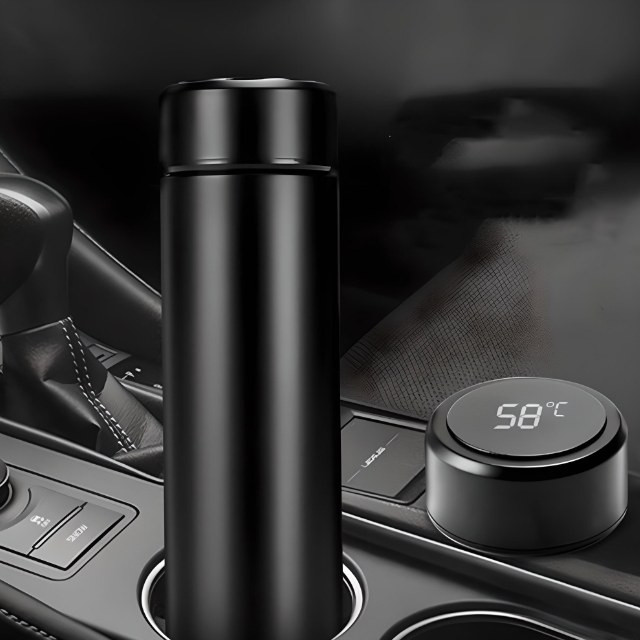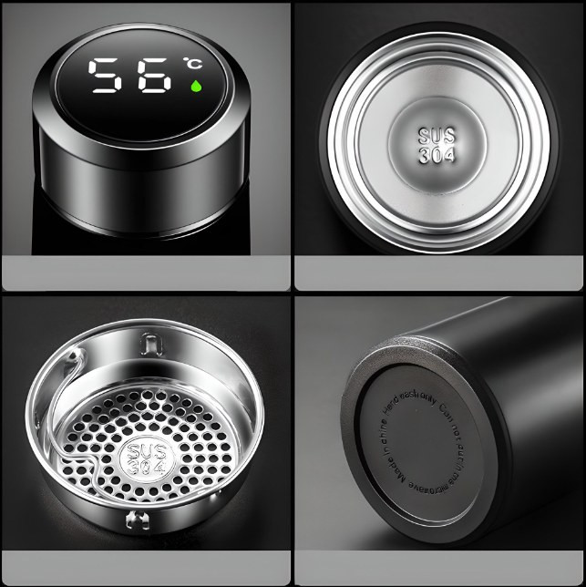Termohrnek vyrobený z nerezavějící oceli a kvalitního plastu. Je vybaven LCD displejem, který zobrazuje aktuální teplotu nápoje.